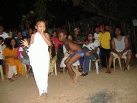 Aeta boy and girl dancing in front of the Indian visitors. You can see Sudha Reddy on the left side and John Anugraha on the right side, in the audience