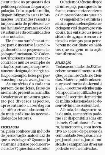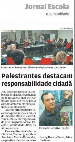 Encontro Mídia e Desenvolvimento Sustentável - Programa Jornal, Escola e Comunidade - A Tribuna, 28 maio de 2007 | |