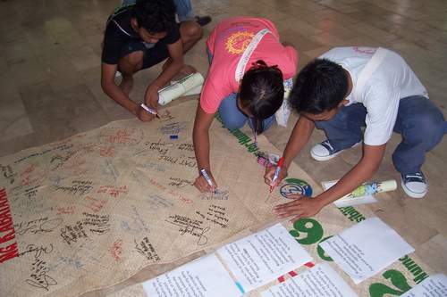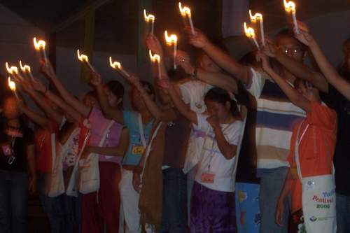 Le Festival des jeunes 2006 s’est réalisé avec succès du 1er au 3 décembre 2006 avec la participation de 80 jeunes provenant de différentes parties de la région. Bien que l’événement eût commencé avec un typhon hors saison qui a frappé la métropole de Manille, les participants ont bravé les prévisions météorologiques pour se rassembler et mener une série de conférences et de débats sur le thème : « Tisser les responsabilités pour répondre aux défis d’aujourd’hui ». Ce festival a été organisé par l’Équipe d’animation de la Charte des responsabilités humaines aux Philippines pour promouvoir le concept et les pratiques de responsabilité parmi les jeunes. Étaient rassemblés principalement des jeunes de familles et de secteurs défavorisés : élèves et jeunes non scolarisés, représentants de groupes ethnolinguistiques différents tels que les Aetas de Zambales, les Hanonoos et les Manabos de Agusan del Sur, des Tausug de Tawi-tawi et des musulmans de Lanao, des Kalingas de la Cordillera, des Tagalos de Cavite, Bulacan, Nueva Ecija et le NCR, des Cebuanos de Cebu, Tacloban, Ormoc, et Davao, des Bicolanos de Camarines Sur et des Ilongos d’Iloilo. La plupart des participants provenaient des secteurs défavorisés suivants de la société philippine : pauvres urbains, travailleurs de la pêche, agriculteurs, peuples indigènes, secteurs ouvriers. Les organisations participantes ont été les suivantes : UP Village Sangguniang Kabataan (le conseil de gouvernement de la jeunesse locale dans le UP Village, Quezon), la Buklod Tao Foundation (organisation des pauvres urbains pour l’environnement et la préparation aux catastrophes à San Mateo, Rizal), le Center for Positive Futures (une école secondaire pour les enfants économiquement défavorisés), Bayanihan Compassionate Economy-VEDCOR (une ONG qui fait de la formation des jeunes pour un développement socioéconomique), SANLAKAS (une confédération multisectorielle qui lutte pour la nationalisme, la démocratie, la justice et le bien-être hmain), Samaka (une organisation de pauvres urbains pour les travailleurs philippin d’outre-mer [Overseas Filipino Workers, ou OFW]), et des familles de Bgy Escopa, Quezon, organisées par l’ONG Kanlungan (une organisation de femmes saisonnières, Kamigma, qui est aussi une organisation de pauvres urbains pour les familles des OFW à Bgy Botocan, Quezon), ECPAT-Philippines (un réseau d’enfants contre le trafic des enfants), Community of Learners’ Foundation (une école d’enfants qui met en œuvre un enseignement intégré et a d’importants programmes de mobilisation), Organization for Training, Research and Development Foundation (OTRADEV) (une organisation de professionnels du développement social qui promeut le développement rural), Samahang Kabataan - Zambales (une organisation des jeunes d’Aeta dans un centre de Botolan), Tuklas Katutubo (une organisation des Aetas à Botolan, Zambales), ISO, Camarines (une organisation de travailleurs de la pêche à Camarines, Bicol), PRRYA-PRRM (une organisation de travailleurs de la pêche de Cavite, San Pedro Relocation Center National High School (un lycée public dans San Pedro, Laguna), Kalinga National High School (un lycée public à Kalinga-Apayao, Province de Mountain), MAKALAYA (une organisation de jeunes femmes à Alangalang, Leyte et Culiat, Quezon), ECLIPSE (une ONG qui travaille sur les enfants qui travaillent en tant qu’ouvriers ruraux dans les champs de canne à sucre d’Ormoc, Leyte), Tao Foundation for Culture and Arts (une ONG qui travaille avec des groupes indigènes à Agusan des Sur, SALAM (institut pédagogique à Muslim, Tawi-tawi), MIT (institut pédagogique également à Muslim, Tawi-tawi), Liga ng Sosyalistang Kabataan (branche jeunes d’une organisation d’agriculteurs à Bulacan et Nueva Ecija), Union of Progressive Students, UP-Cebu (une organisation d’étudiants basée à l’Université des Philippines-Cebu), et la Christian Foundation for Children and Aging (une ONG engagée sur les questions des enfants et des personnes âgées basée à Antipolo, Rizal et à Antique, Île Panay). Les personnes ressource pour les plénières du Festival étaient : Ernest Cloma de la troupe de théâtre prestigieuse Philippine Education Theater Association (PETA), qui réalisé avec les jeunes l’histoire du mouvement de la jeunesse philippine dans une mise en scène ; le Dr Sylvia H. Guerrero du Centre des études sur les femmes, de l’Université des Philippines, qui a parlé du concept socioculturel de la responsabilités dans la psyché philippine, et a présenté le banca Philippin comme symbole de la responsabilité entre les familles, la communauté et la nation ; et l’artiste culturelle Me Grace Nono, qui a facilité le programme de clôture et a expliqué que tous les Philippins, quels que soient leurs différences culturelles et groupements ethnolinguistiques, sont autochtones des Philippines et dont partagent un héritage culturel commun.