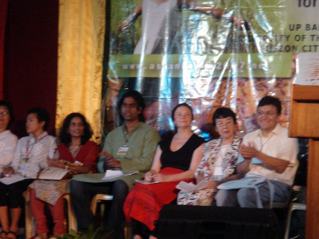To elaborate on the Charter, the Governing Differently Workshop held a whole-day program on October 18, 2007, the second day of the Asian Forum. The Plenary facilitator was Ms. Yoko Kitazawa of PARC in Japan. The keynote speaker was Gustavo Marin of the FPH who explained the framework on the relationship of the Charter of Human Responsibilities, solidarity economy and governance. Gustavo explained that economy is a branch of governance and that the Charter is a new global social contract that serves as a universal ethic based on the notion of responsibility that complements the Universal Declaration of Human Rights and the Charter of the United Nations, promoting both responsible governance and solidarity economy. Another key speaker was former Senator Joey Lina of the Alliance on Servant Leadership, who gave a testimonial on Servant Leadership. There was a panel of five presenters of case studies during the plenary. These included Sudha Reddy of India who spoke of indigenous women’s initiatives in India, Betsan Martin of New Zealand who spoke on responsibilities connected with water resources in the Pacific, Anugraha John of the India-China Youth Forum who spoke of programs undertaken by Indian and Chinese young people, Aleli Bawagan of the University of the Philippines College of Social Work and Community Development who spoke on how the indigenous group – the Iraya Mangyans of Mindoro exercise responsibilities in their community and in their environment, and Ma. Josefa Francisco of the International Gender and Trade Network who spoke of women, trade and responsibilities. The plenary was graced by students of the Center for Positive Futures who opened the program with the National Anthem in tableau and a doxology in dance as well as Pipo Lina who gave a rendition of songs. Pinky Cupino, coordinator of the Charter Facilitation Team in the Philippines gave the welcome remarks while Dr. Ruben Martinez of the Organization for Training, Research and Development Foundation, Inc. (OTRADEV) gave the plenary synthesis. In the afternoon, the Charter held four Associated Sessions covering the following topics: