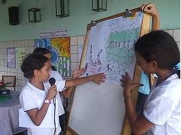 Les Conférences Nationales des Enfants et Adolescents pour l’Environnement englobent une stratégie d’Education Environnementale, tournée vers les systèmes d’enseignements, qui désormais intègre les politiques de l’Organe Gestionnaire de la Politique Nationale d’Education Environnementale [2] , formée par le Ministère de l’Education (MEC) [3] et de l’Environnement (MMA) [4] . L’Organe Gestionnaire suit la mission du Programme National d’Education Environnementale - PRONEA [5] : “L’éducation environnementale qui contribue à la construction de sociétés aux développements durables, avec des personnes participantes et heureuses dans tout le Brésil”. Comme le dirait l’éducateur Paulo Freire, que ce “rêve possible rappelle exactement l’éducation libératrice, non pas comme l’éducation domestique, quand elle pratique l’utopie [...]. L’utopie dans le sens où c’est cette pratique qui vit l’unicité dialectique, dynamique, entre la dénonciation d’une société injuste et expoliatrice et l’annonce du rêve possible d’une société...” que nous appelons désormais “durable”. En 2003 et 2005, le Brésil a organisé la 1ère et la 2nde Conférence Nationale des Enfants et des Adolescents pour l’Environnement (CNIJMA), comptant sur la participation directe de 21 000 écoles et 7,5 millions de personnes. En avril 2009, lors de sa 3ème édition nationale, la Conférence se consolidera sur la scène des politiques publiques d’éducation environnementale au Brésil, et s’ouvrira vers une Rencontre d’Observateurs Internationaux, qui pourront vivre directement l’expérience. En avril 2006, au cours de la 2nde Conférence Nationale des Enfants et des Adolescents pour l’Environnement, l’Observatrice Internationale Edith Sizoo [6] a suggéré aux Ministres brésiliens de l’Environnement et de l’Education de partager cette expérience avec d’autres pays, en organisant une version mondiale de l’évènement. L’intérêt international suscité par l’éducation environnementale brésilienne a donc encouragé le gouvernement fédéral, à travers les ministères cités, à assumer la tâche et à faciliter l’organisation de la Conférence Internationale. Le Brésil présente, ainsi, une technologie socio-éducationnelle qui inclue des enfants, des jeunes, des éducateurs du monde entier, pour un évènement multiculturel dans lequel les délégations provenant de divers pays peuvent débattre de questions socio-environnementales locales, régionales et globales, et assumer leurs responsabilités et actions, tout en formant une chaine mondiale infanto-juvénile : Prenons Soin de la Planète. Le processus pour arriver à la réalisation de la Conférence Internationale débute par l’étude et le débat de thèmes proposés dans les écoles, suivis de la réalisation de Conférences pour l’Environnement dans les Ecoles, où sont élus les délégués qui pourront participer à des Conférences Nationales dans leurs pays. Ensuite vient la réalisation des Conférences Nationales au sein de chaque pays participant, avec l’élection des délégués qui participeront à la Conférence Internationale et, enfin, viendra l’évènement final de la Conférence Internationale au Brésil, en 2010. Il doit être souligné, à travers cette méthodologie, que les Conférences au Brésil se constituent comme une instance d’apprentissage de la démocratie participative, qui fait partie d’un système articulé, formateur, intégré et intégrant, capable de répondre à la formation permanente, initiale et continuée des professeurs/éducateurs environnementaux. Ce système facilite aussi le développement d’actions structurantes, entre lesquelles l’implantation du COM-VIDA (Commission Environnement et Qualité de Vie) qui se démarque avec l’Agenda 21 dans l’Ecole (pour plus de détails, voire l’annexe 1 : l’expérience brésilienne). Thème pour débattre dans les écoles du monde: changements climatiques / réchauffement global