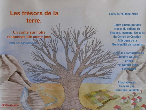 Le premier produit de ce travail est le conte Les trésors de la terre, sur « notre responsabilité à l’égard de l’environnement », écrit par Yolanda Ziaka, sur la base de mythes en provenance de plusieurs cultures. Ce conte s’adresse à des enfants de 10-12 ans. Le texte du conte lui-même est accompagné par de notes adressées aux éducateurs et aux parents, explicitant les questions d’environnement et de gestion des ressources présentées dans le conte, ainsi que de notes précisant les références mythologiques.