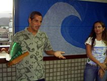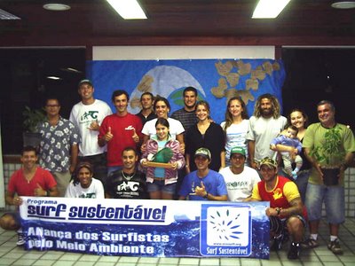 A “Aliança dos Surfistas pelo Meio Ambiente e Sustentabilidade” foi lançada em Ubatuba, no dia 18 de junho, durante o seminário "Nas Ondas da Sustentabilidade". A atividade, que integra o Programa Surfe Sustentável, da Entidade Ecológica dos Surfistas (Ecosurfi), foi realizado em parceria com a Associação Ubatuba de Surf (AUS) e a Prefeitura Municipal de Ubatuba, por meio da Secretaria de Meio Ambiente. A idéia é construir a “Carta de Responsabilidades dos Surfistas para Sociedades Sustentáveis” a partir das ações, propostas e reflexões, articuladas em rede, das diversas comunidades do surfe espalhadas pelo litoral brasileiro. A "Aliança dos Surfistas" é esta rede, que tem como proposta ser uma catalizadora de parcerias, articulando todos os seguimentos dentro da comunidade surfe (mídia, indústria, sociedade civil, profissionais etc) para agir e refletir em torno da Surfe e geração Aliança dos Surfistas pelo Meio Ambiente e Sustentabilidade Ecosurficonstrução de sociedades sustentáveis. A proposta traz o conceito de “responsabilidades humanas” como fio condutor dos debates sobre o papel do surfista na sociedade contemporânea, que encara o desafio de enfrentar e se adaptar às mudanças ambientais globais. Traz também a idéia de que estão no nível local as possibilidade mais coerentes de elaborar estratégias e intervir com praticidade nos acordos políticos que causam os conflitos socioambientais. Para o dirigente da Carlinhbos e Paulo Mota Associação Ubatuba de Surfe AUS Aliança dos Surfistas EcosurfiEcosurfi, João Malavolta, a sociedade civil não pode mais achar que é da classe política o compromisso por cuidar das pessoas, zelar pela comunidade e valorizar a vida. Ao mesmo tempo em que não se pode mais achar que “cada um fazer sua parte” é o suficiente. “A atitude individual é importante na resolução da crise ambiental que vivemos, as escolhas pessoais são fundamentais. Mas não podemos deixar de lado a Saulo Junior Aliança dos Surfistas pelo Meio Ambiente Ecosurfi Ubatubaperspectiva coletiva, que é o que marca e induz o comportamento das pessoas”, fala Malavolta. E neste contexto, “o surfe promove e expressa um estilo de vida saudável, representa uma imagem positiva, mas também há um desgaste da verdadeira essência do surfe por meio do estímulo exagerado do consumo”, conclui. Propostas ubatubenses Durante o seminário em Ubatuba, diversos segmentos do surfe interagiram. Participaram fabricantes de pranchas, representantes da prefeitura, da CETESB, ONGs locais e surfistas amadores e profissionais, entre eles o top do Super Surf e atual campeão paulista profissional, Saulo Junior, o ex-Top do WQS, Tadeu Pereira e Narciso Oliveira, ambos também campeões paulista de surf profissional, além do embaixador do surfe de Ubatuba, Zecão. Segundo o ex-surfista profissional, Tadeu Pereira, a partir das pequenas ações é possível melhorar o lugar que vivemos e cuidar da qualidade do sistema costeiro. "Se cada um no seu dia a dia fizer coisas pequenas, atitudes simples como não poluir a praia e orientar as pessoas sobre o respeito que ela merece, já estará contribuindo para a mudança". Da conversa sobre responsabilidades o papo avançou para a construção coletiva de propostas que pudessem ser transformadas em coisas práticas. Os surfistas então conversaram sobre os conflitos do surfe na realidade socioambiental local e depois apresentaram suas propostas para construir soluções e resolver alguns deles. Emergiram questões como os impactos provocados pelos eventos de surfe nas praias e comunidades Patrícia Maciel Agenda 21 Ubatuba Aliança dos Surfistas Ecosurfi Ubatubalocais e o alto nível de agressão causado pela indústria de pranchas. E foram abordadas também as escolinhas de surfe como espaços propícios para implementar a educação ambiental, além dos surfistas como potenciais produtores e difusores de informações ambientais em nível local, cuidando da qualidade dos oceanos e ambientes costeiros. Entre as propostas, surgiram idéias como formar um grupo de trabalho para elaborar critérios para os campeonatos de surfe e a criação de uma comissão para construir, em parceria com a Prefeitura e CETESB, para elaborar metas e soluções para a gestão adequada dos resíduos de fábricas de pranchas. Além de um mutirão de limpeza de praias na Praia de Fora, uma das que vem sofrendo bastante com o lixo. José Carlos Renno, embaixador do surf de Ubatuba mais conhecido como Zecão, disse que a iniciativa é muito interessante. "Eu já faço coisas na área, como quando implantamos a educação ambiental na escolinha de surfe. Isto só anima a continuar insistindo e enfrentando as dificuldades", falou. Outro que também gostou foi o presidente da Associação Ubatuba de Surf, Paulo Motta. Para ele “este é um processo que já deveria ter começado, porque realmente o lixo gerado pelas fábricas de prancha é um resíduo muito danoso para o meio ambiente. O seminário teve o objetivo de plantar uma semente para instigar as ações efetivas. O fato deste projeto ter vindo de fora denota que Ubatuba realmente é considerada a capital do surf e como tal, deve servir de exemplo também na preservação do meio ambiente. Este é um projeto que tem potencial para atingir toda a costa brasileira. Como cidadão e filho desta cidade, pretendo ajudar a fazer crescer este movimento.”