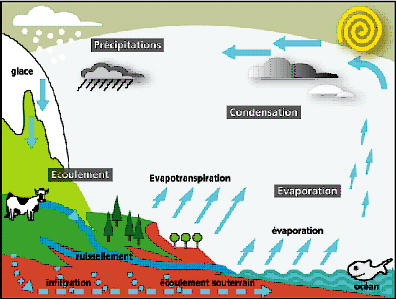 [16] Cifras extraídas del sitio del CNRS (Centre National de la Recherche Scientifique), Dossier scientifique : L’eau, "Le cycle de l’eau"