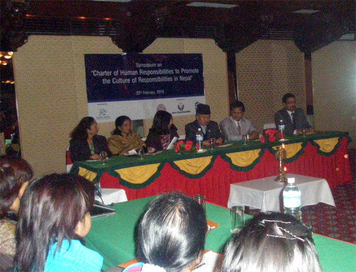 In fact, the symposium has proved very productive especially because of the meaningful outputs. It succeeded to draw the attention, commitment and views of top level personals/state actors and key stakeholders. Moreover it has been able to add a mile-stone in its way ahead to setup the CHR and promote the culture of Responsibilities in Nepal.