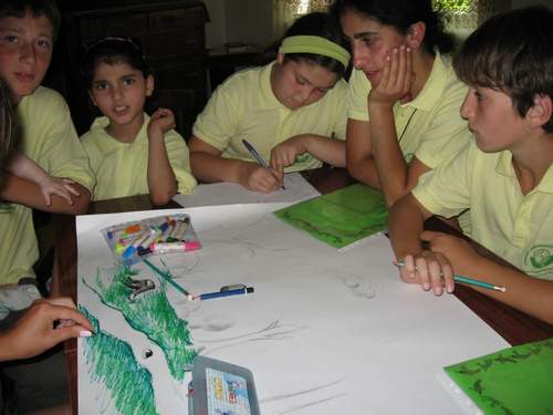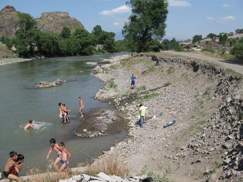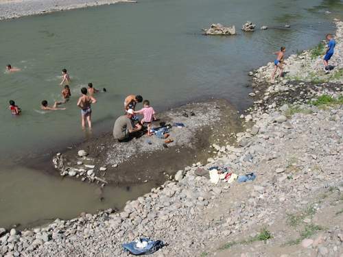 The second day, the young Armenians and Georgians discussed the different principles of the Charter and decided to organize a cleaning of the banks of the river they share. We got gloves and plastic bags to collect the garbage. Then, very happy about their action, the youngsters bathed in the river.