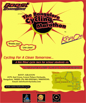 Pipal Tree, en Bangalore, apoya al MARATÓN de CICLISMO de BANGALORE, organizado por Krayon, una carrera en bicicleta llena de divertimientos para estudiantes escolares con el tema "Hacer ciclismo para un futuro Limpio."