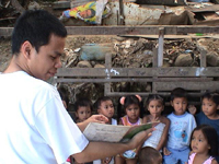 Campamento de la paz organizado por la Community of Learners Foundation en una comunidad urbana pobre en Barangay Payatas, Quezon City. La Community of Learners es una escuela no tradicional que enseña la responsabilidad social a sus estudiantes, que pertenecen a familias de clase media y acomodada.